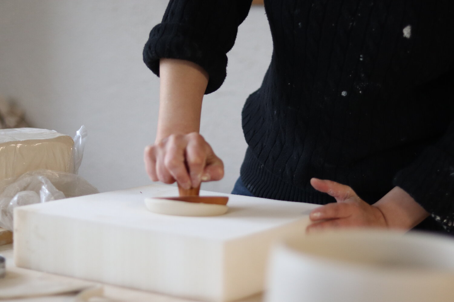 Useful in handbuilding, use it to make slab bowls on foam. The head is 4" x 4" and 1" thick Walnut, the handle is 3-4" long oak.