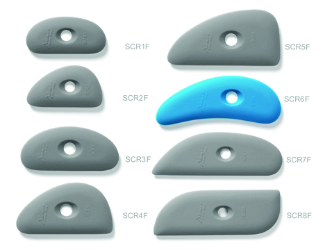This Firm Silicone Clay Rib is great for shaping both interior and exterior of larger bowls, plates and vases. Two round ends are for the neck and detail work.