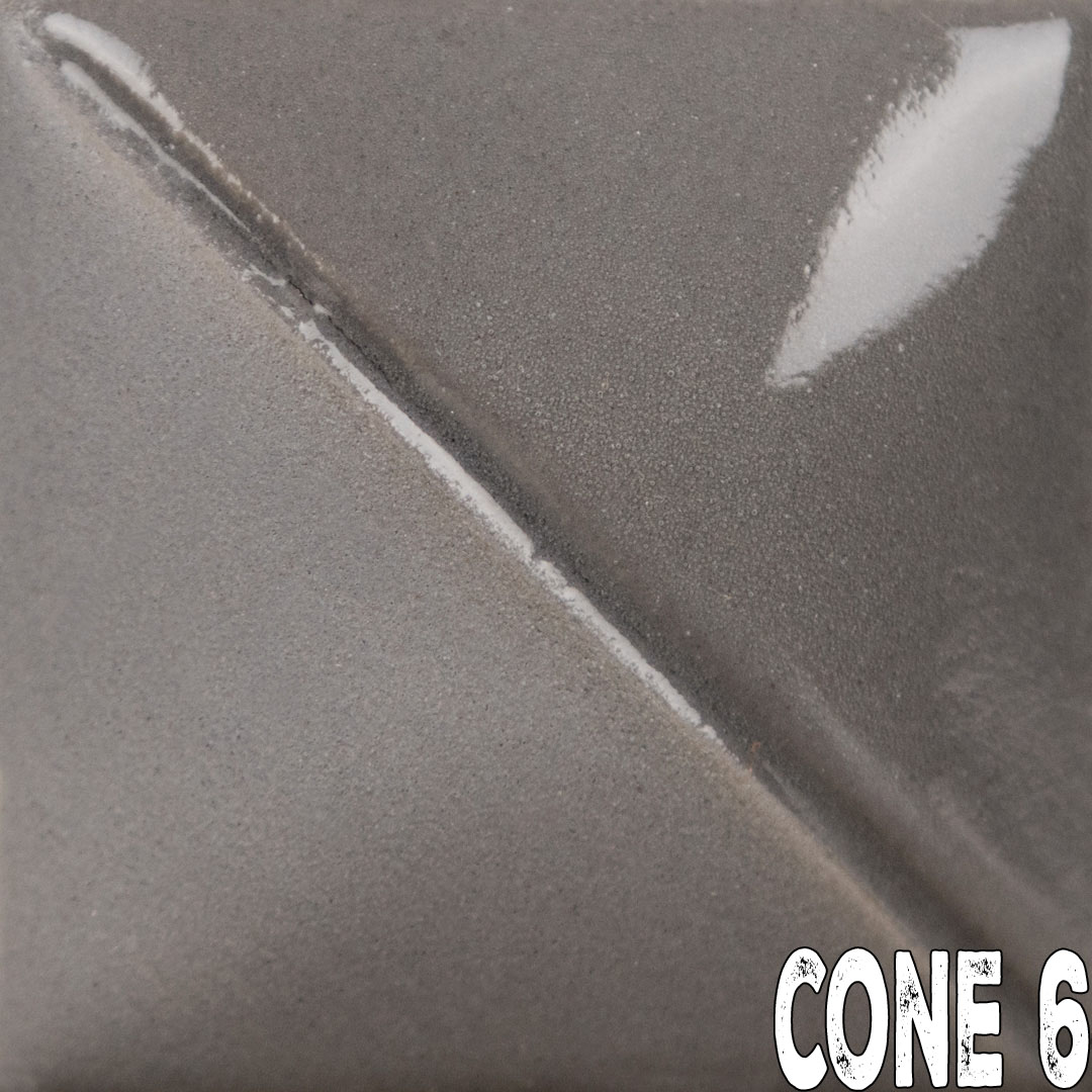 Dark Grey will fire matte without addition of a clear glaze. To intensify color or for use on dinnerware, apply clear or matte clear glaze.