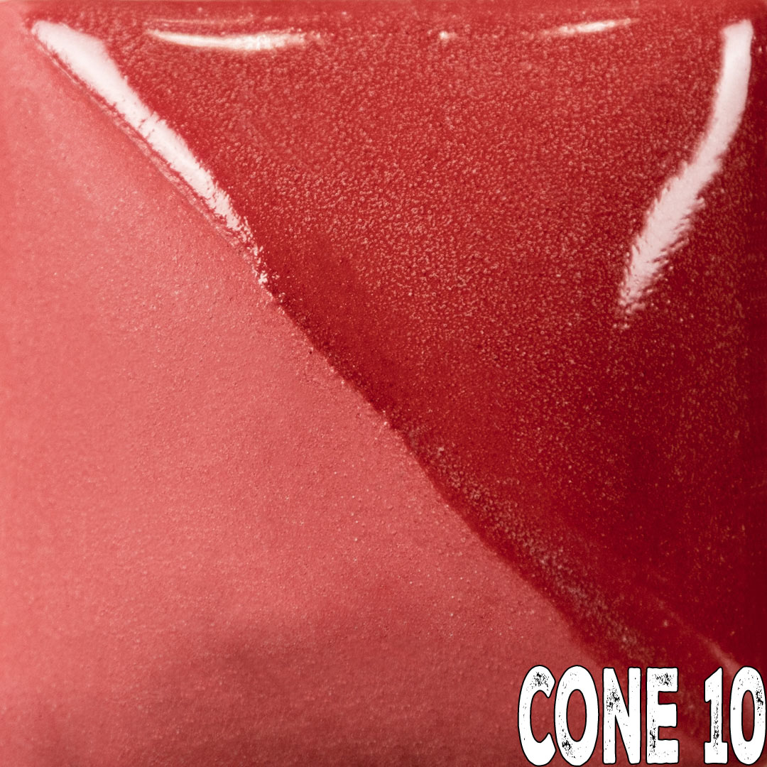 Dragon Red will fire matte without addition of a clear glaze. To intensify color or for use on dinnerware, apply clear or matte clear glaze.