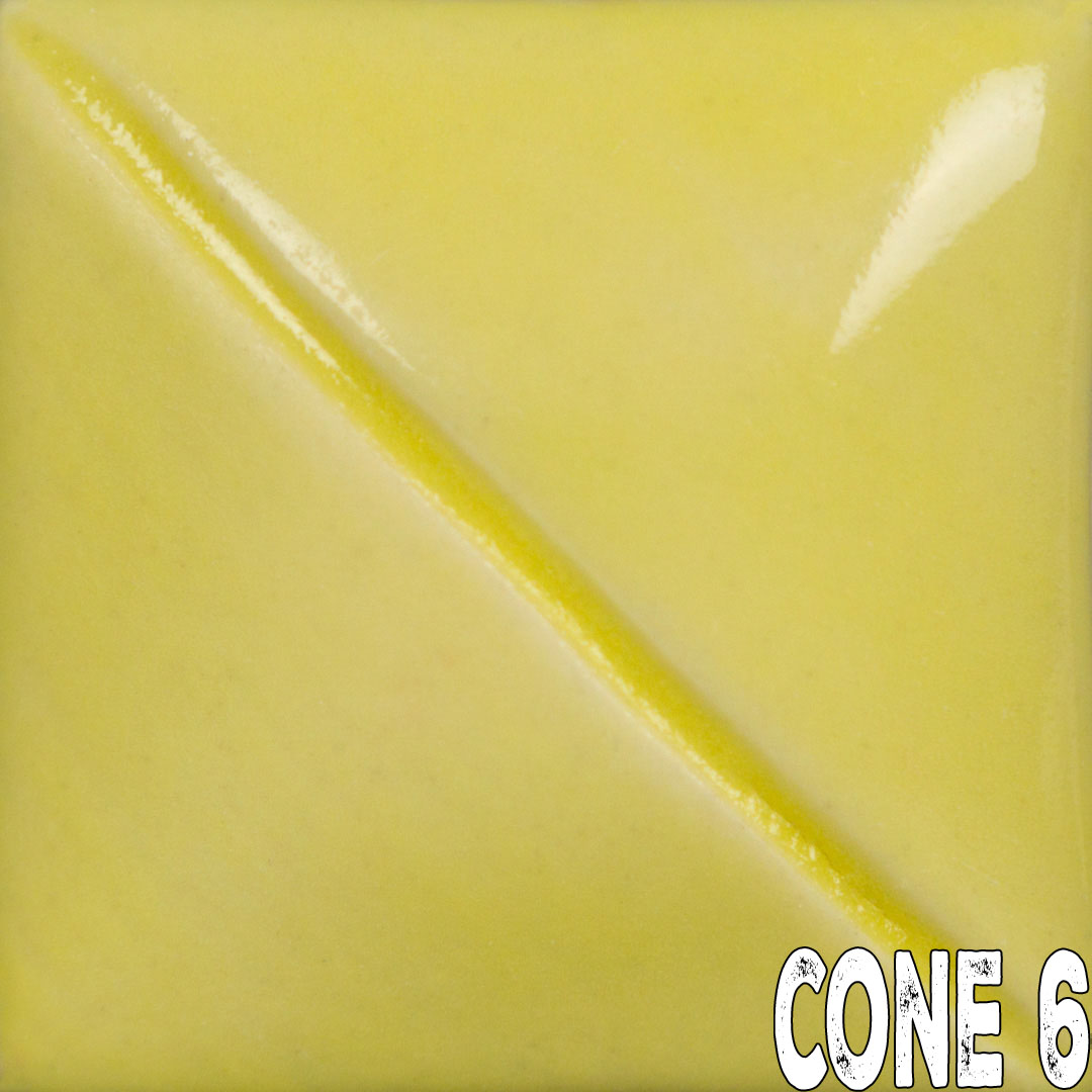 Soft Yellow will fire matte without addition of a clear glaze. To intensify color or for use on dinnerware, apply clear or matte clear glaze.